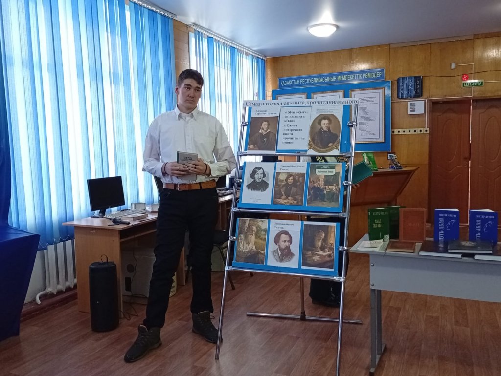 Бүгін,колледж кітапханасында орыс жазушыларының шығармаларына арналған "Мен оқыған ең қызықты кітап"атты танымдық іс-шара өткізілді.Іс-шараның мақсаты -студенттердің кітап оқуға деген қызығушылығын арттыру,оқырмандық мәдениетін қалыптастыру және классикалық әрі заманауи орыс әдебиеті арқылы олардың дүниетанымын кеңейту.Іс-шараға 1-3курс студенттері Кравченко Мария.Ласточкина Виолетта.Лагушкин Климентии.Фролов Кирилл.Давидова Анастасия.Жуков Александр.Федюнин Андрей.Николаенко Дмитрии.Федюнин Егор.Елкина Диана қатысты.Қатысушылар өздеріне ерекше әсер қалдырған кітаптар туралы баяндама жасап,ой-пікірлері мен бөлісті.Атап айтқанда,Александр Сергеевич Пушкин.Лев Николаевич Толстой.Антон Павлович Чехов.Михаил Юрьевич Лермонтов.Абай Құнанбаев сияқты көрнекті қаламгерлердің шығармалары таныстырылды.Студенттер шығармалардағы кейіпкерлердің іс-әрекеттерін талдап,олардың бүгінгі күнмен байланысын атап өтті.Кітаптарда көтерілген адамгершілік,адалдық,жауапкершілік,Отанға деген сүйіспеншілік ерекше назарға алынды.Іс-шара жылы әрі достық атмосферада өтті.Қатысушылар белсенділік танытып,өзара пікір алмасып,осындай кездесулерді жиі өткізуге ниет білдірді.Соңында кітапханада бар орыс және қазақ жазушыларының кітаптарын көрме ұйымдастырылды.